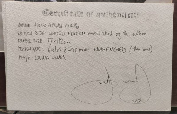 Adolfo Arenas Alonso - Loving VenusEdition size: limited edition 1 of 1 "The Bird"Paper size: 76.5 x 112 cmTechnique: Giclée 8 Iris Print embellished by the author.
